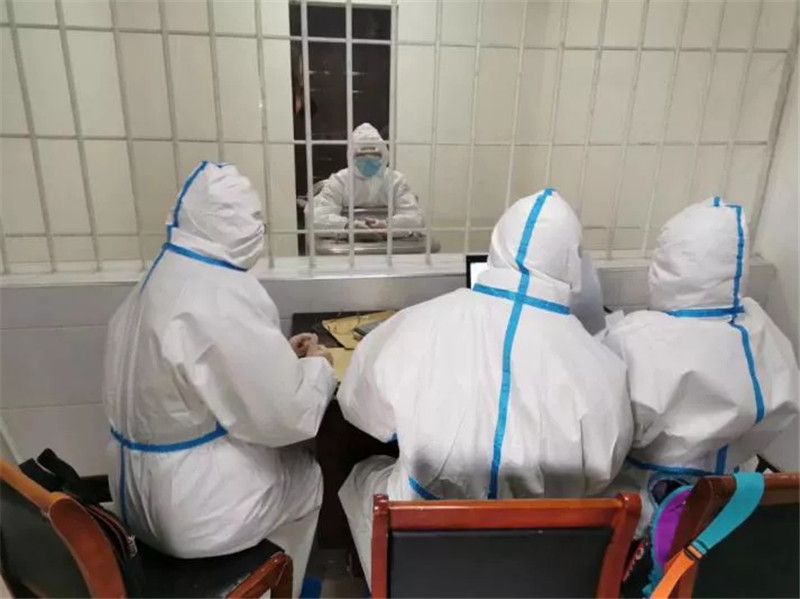 图为省检察院第二检察部干警疫情期间在看守所提审。