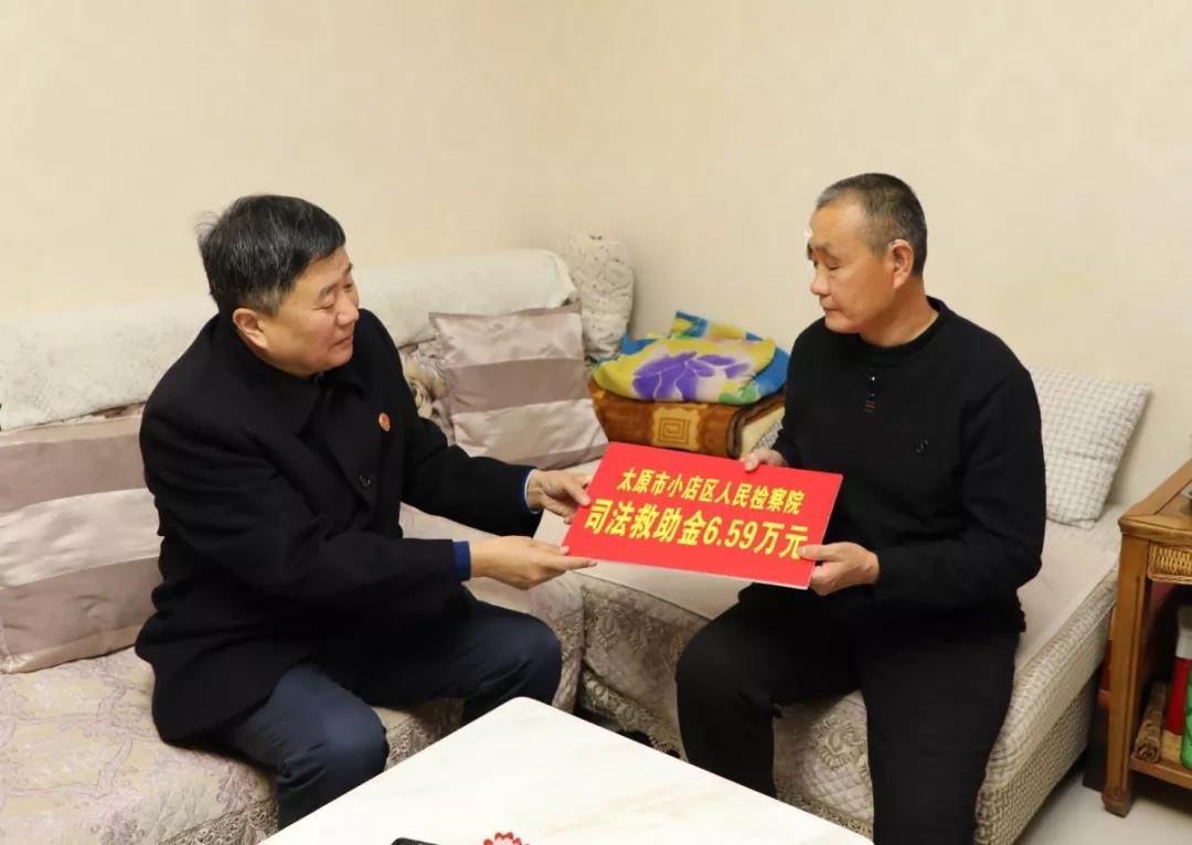 12月18日上午,太原市小店区检察院党组书记、检察长孙中杰,检察委员会专职委员郭胜春等一行6人,前往司法救助申请人杨某某家中,为其发放司法救助金。