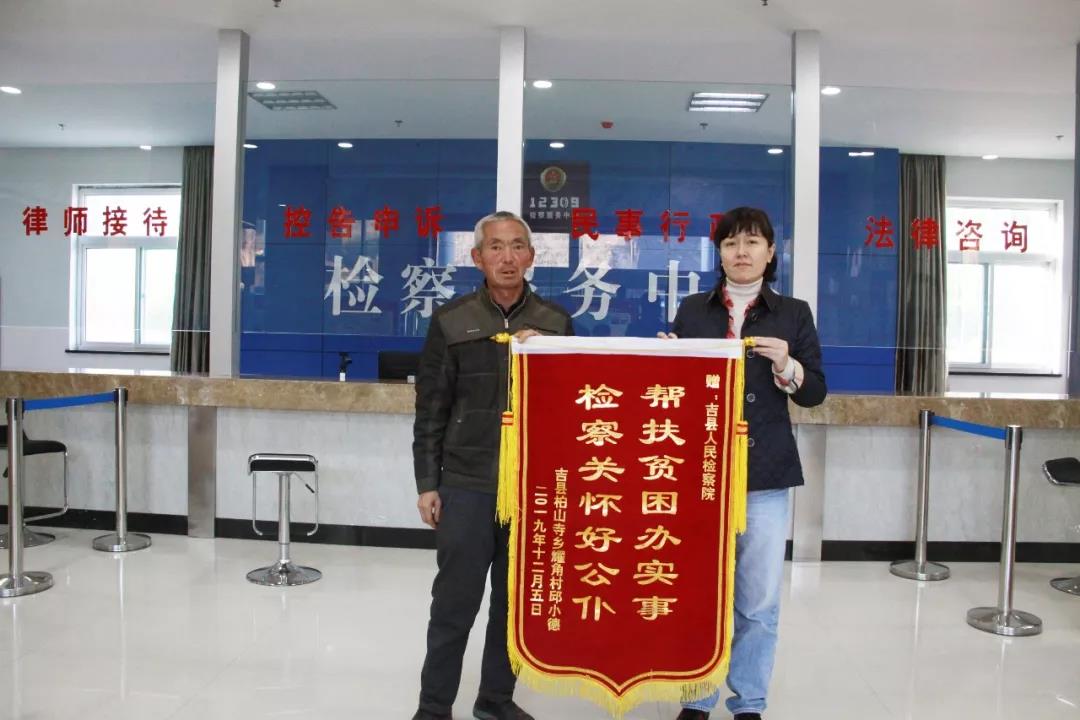 12月9日,吉县人民检察院收到一份特殊的礼物,来自司法救助案件被救助人邱某某送来的一面锦旗,上书“帮扶贫困办实事、检察关怀好公仆”。