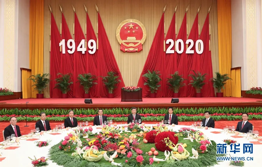 9月30日晚,国务院在人民大会堂举行国庆招待会,热烈庆祝中华人民共和国成立七十一周年。习近平、李克强、栗战书、汪洋、王沪宁、赵乐际、韩正、王岐山等党和国家领导人与近500位中外人士欢聚一堂,共庆共和国华诞。