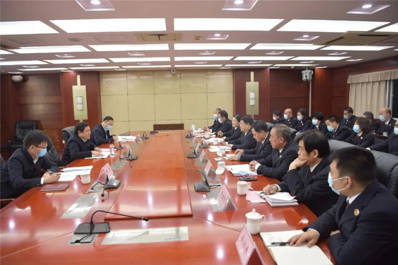12月14日,省检察院党组书记、检察长丁顺生到廊坊市检察机关调研指导检察工作。图为在廊坊市检察院召开座谈会。