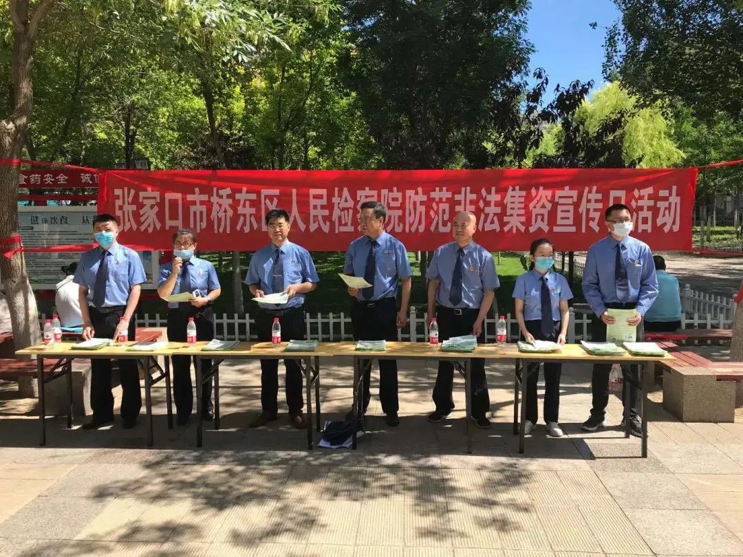 张家口市两级检察机关集中在各地广场等繁华地点开展集中宣传活动,检察干警通过悬挂宣传横幅、设立咨询台、发放宣传资料等形式,向过往群众详细介绍了非法集资的定义、特征、常见领域、常用的作案手法和作案方式,鼓励群众要坚决同非法集资行为作斗争,发现非法集资线索时,及时向司法机关举报。