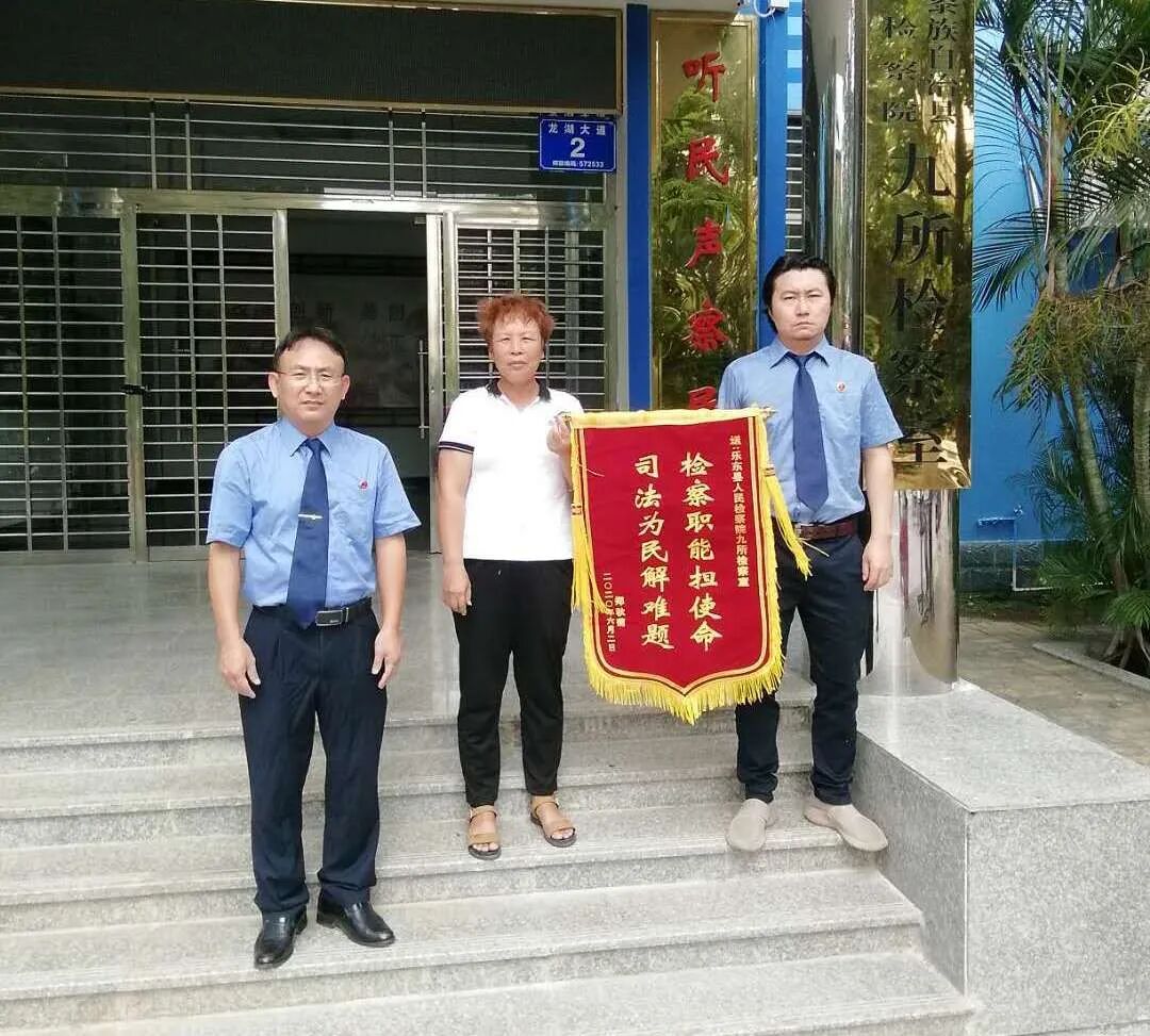 2020年6月8日,九所山脚村村民郑某菊将一面绣着“检察职能担使命·司法为民解难题”的锦旗送到九所检察室,这是对他本着司法为民的理念,妥善化解矛盾纠纷维护群众的合法权益的真实写照。