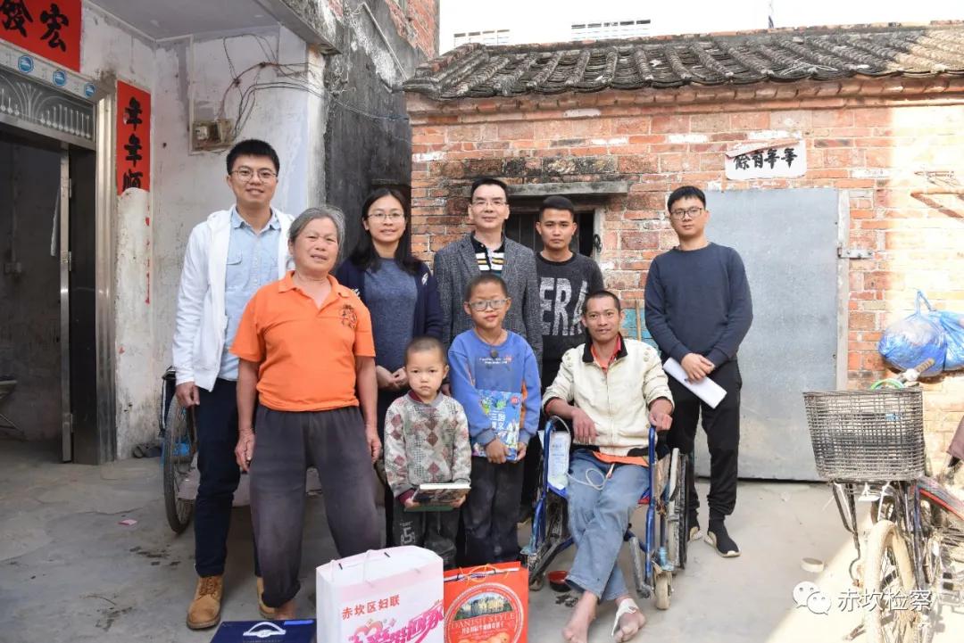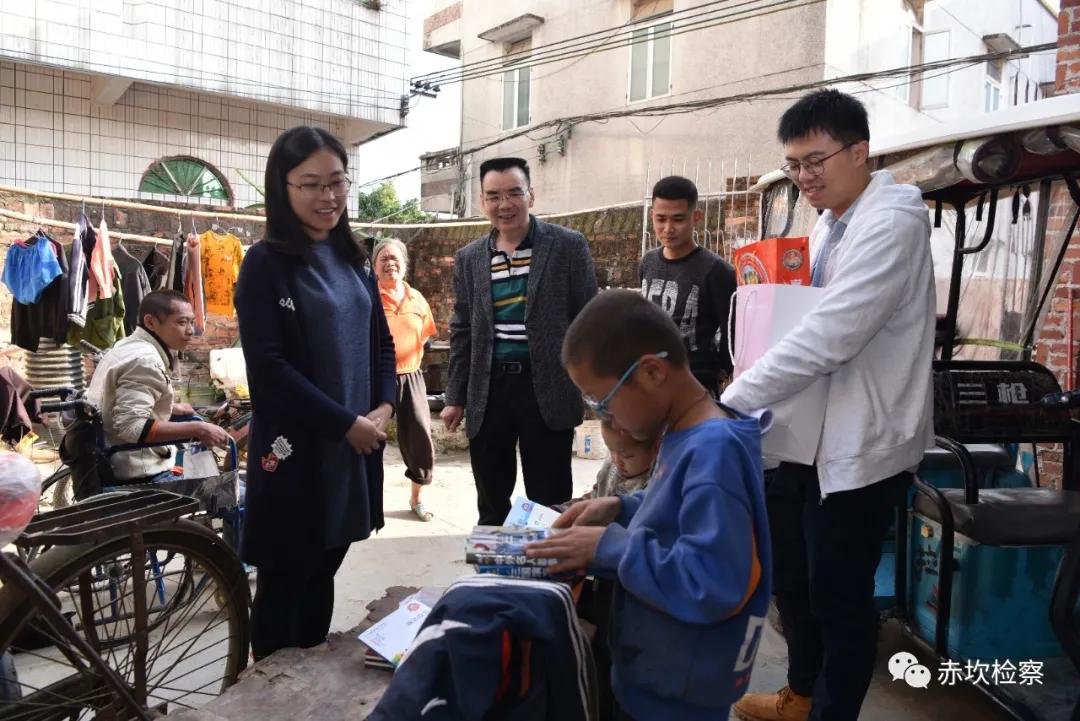 2月3日下午,在春节来临之际,赤坎区检察院何金陈检察长带领办公室及未检办干警到结对帮扶村东山村开展“阳光成长 快乐奔康”结对帮扶活动,慰问结对的困境儿童,给孩子们带来生活、学习用品,为孩子们送上新春的问候和祝福。