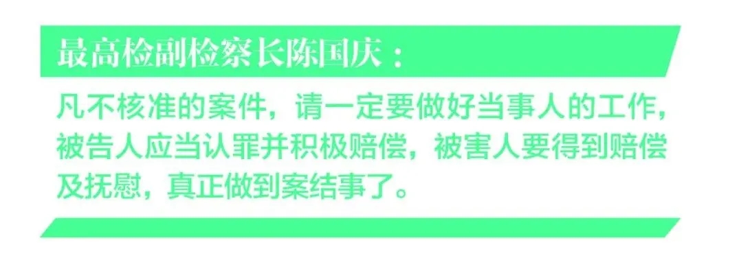 今年3月,最高人民检察院副检察长陈国庆对核准追诉案件办理作出指示:“凡不核准的案件,请一定要做好当事人的工作,被告人应当认罪并积极赔偿,被害人要得到赔偿及抚慰,真正做到案结事了。”