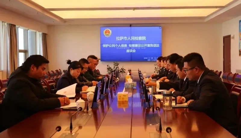 为加强检察建议刚性监督力,提升检察建议公众知晓度、认可度、支持度,11月6日下午,拉萨市检察院召开了“保护公民个人信息 检察建议公开宣告送达”会,对拉萨市检察院近期办理的保护公民个人信息行政公益诉讼案件的检察建议进行公开宣告送达,拉萨市市场监督管理局、拉萨市住房和城乡建设局、拉萨市邮政管理局、拉萨市消费者协会相关负责人出席会议,拉萨市人大代表、市政协委员、人民监督员应邀参加。