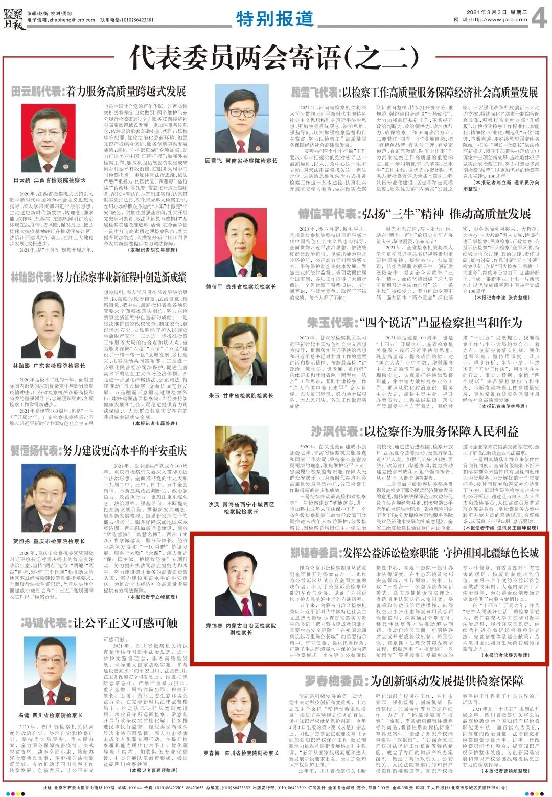 3月3日《检察日报》第4版:代表委员两会寄语(之二)