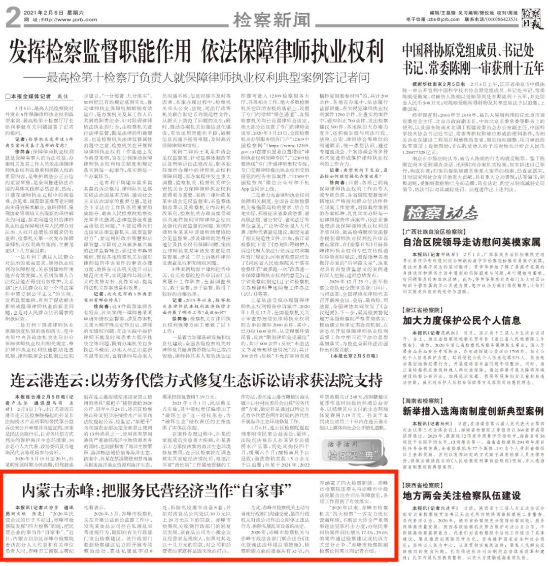 2月6日《检察日报》第2版——内蒙古赤峰:把服务民营经济当作“自家事”