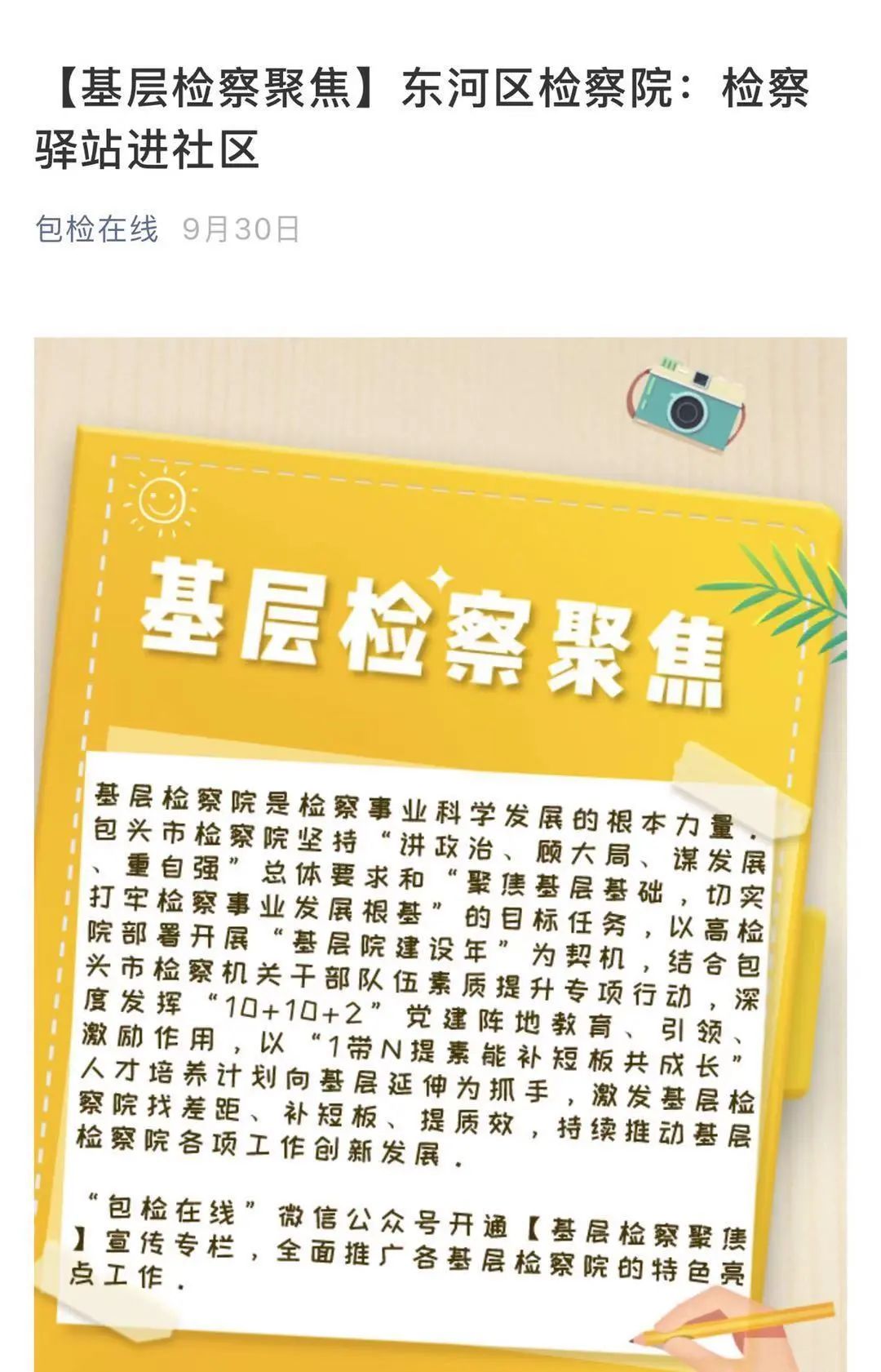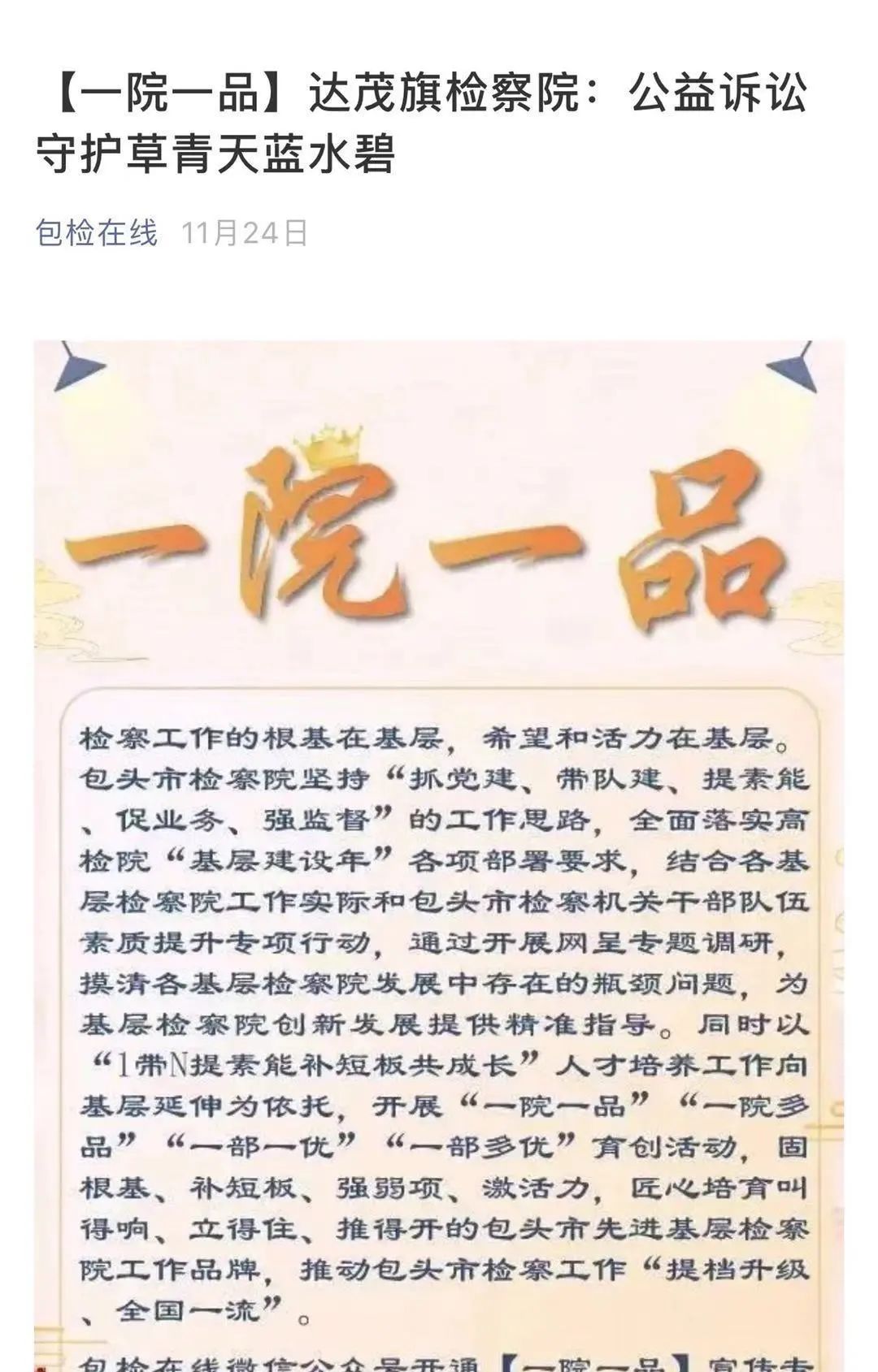 2019年以来,包头市检察机关10件案件被评为全国检察机关典型案例或精品案件,20余篇理论文章在国家核心期刊发表,包头市检察院检务透明度全国排名第八。基层检察院“一院一品、一院多品”品牌工作通过包检“两微一端”持续发布。两级院近10名干警获得全国先进工作者、全国优秀公诉人、全区检察业务标兵、能手等荣誉。公益诉讼、服务民营企业和服务经济高质量发展等工作受到包头市委主要领导6次肯定批示,得到高检院、自治区人大常委会的表彰。