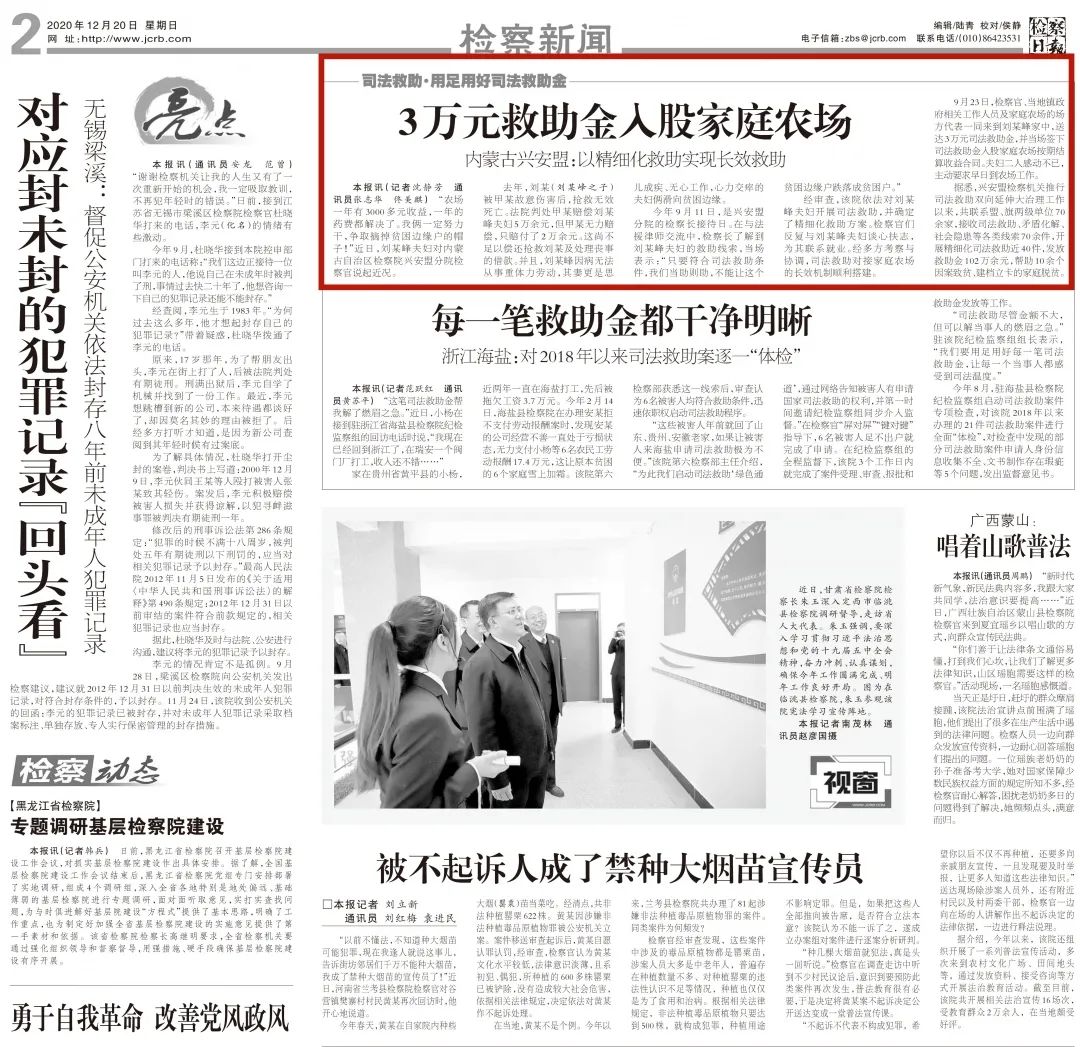 12月20日《检察日报》第2版:司法救助·用足用好司法救助金——3万元救助金入股家庭农场