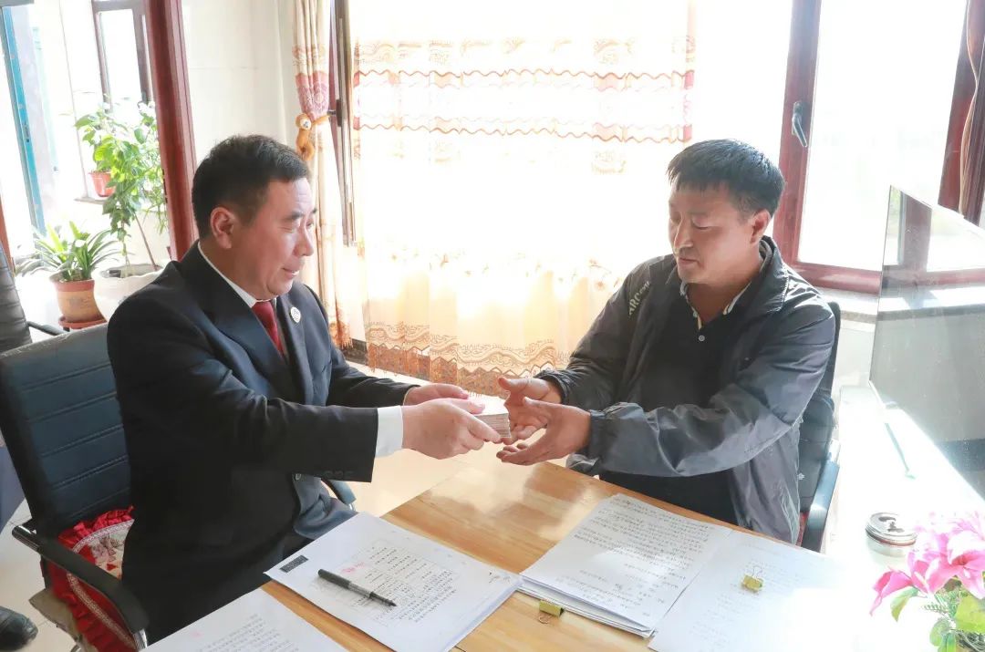 9月23日,检察官、当地镇政府相关工作人员及家庭农场的场方代表一同来到刘某峰家中,送达3万元司法救助金,并当场签下司法救助金入股家庭农场按期结算收益合同。夫妇二人感动不已,主动要求早日到农场工作。
