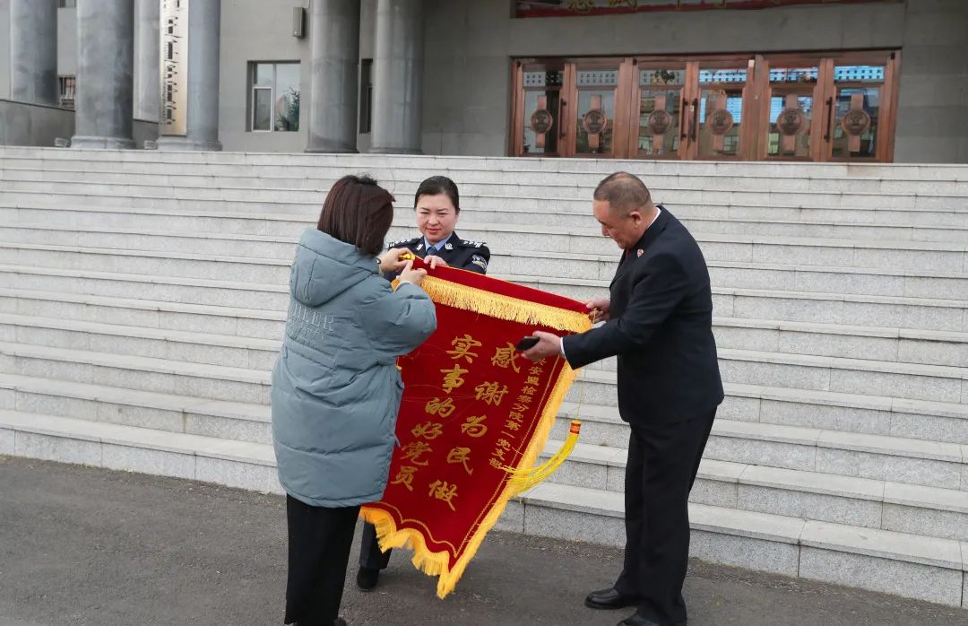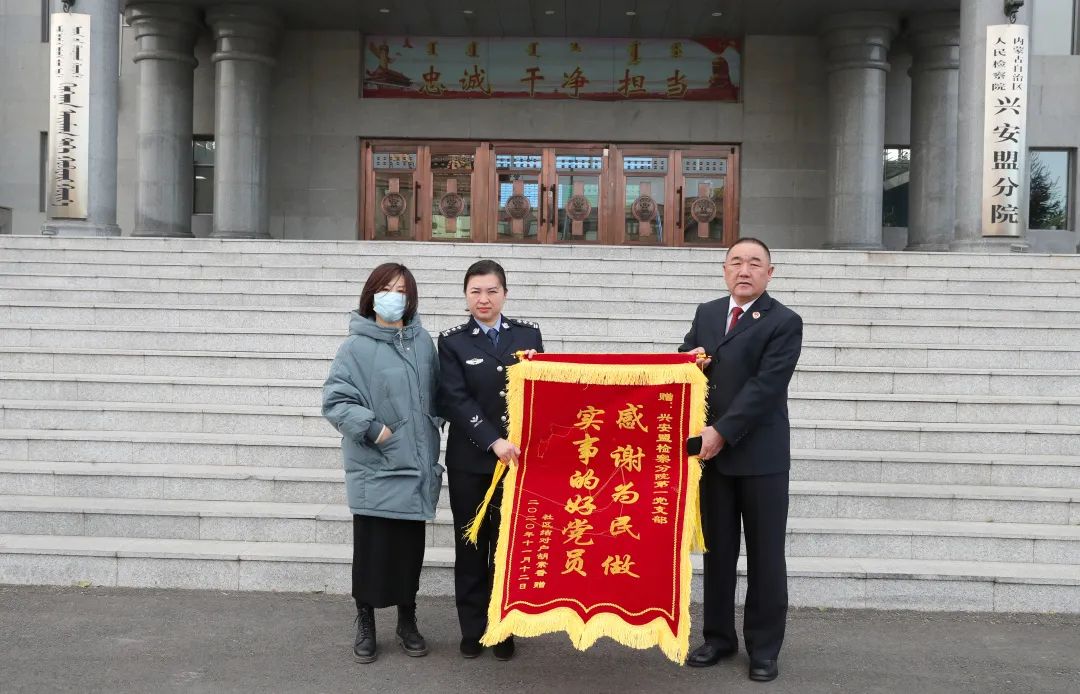 近日,一位中年女子在兴安盟检察分院门口徘徊着,她望向院门的眼睛闪烁出喜悦的目光,见到兴安盟检察分院黄永文走来,她立马抖开手中的红色卷轴,“感谢为民做实事的好党员”……