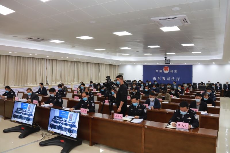 3月26日上午,全省司法行政工作会议暨重点工作攻坚年动员部署视频会议在济南召开,深入学习贯彻习近平新时代中国特色社会主义思想和党的十九大、十九届二中、三中、四中全会精神,认真贯彻落实习近平总书记对政法工作的重要指示和中央全面依法治国委员会第三次会议、中央政法工作会议、全国司法厅(局)长会议、全国司法行政系统做好当前疫情防控和各项工作电视电话会议精神,贯彻落实全省“重点工作攻坚年”动员大会、省委全面依法治省委员会第三次会议和省委政法工作会议精神,总结2019年工作,分析形势,部署2020年工作任务。省司法厅党委书记、省监狱管理局第一政委王玉君出席会议并讲话,厅领导周立军、迟丽华、马灵喜、吴磊、齐延安、朱晓峰、丁信贤、刘淼、孙成文、李邦喜出席。