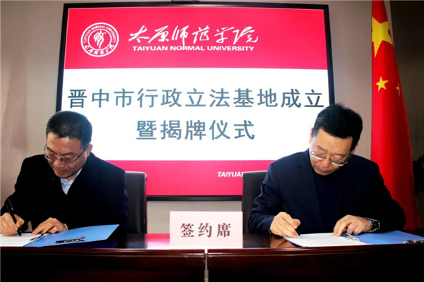 2月27日,晋中市司法局与太原师范学院签署合作协议,全省首家市级行政立法基地正式揭牌成立。晋中市司法局党组书记、局长邵安智出席揭牌仪式并讲话。太原师范学院副院长王卫平、薛晋文及法律系主任薛晓蔚等参加揭牌仪式。