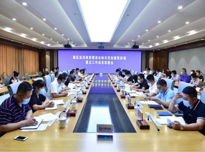 为认真落实省、市相关会议要求,积极推进法治政府建设,按照《长春市2020-2021年争创全国全省法治政府建设示范单位活动实施方案》要求,8月11日,长春新区召开“法治政府建设达标示范创建等四项重点工作动员部署会”,对新区法治政府建设达标示范创建、全面推行包容审慎监管执法“四张清单”制度工作、剖析整改行政机关被纠错案件优化营商环境工作、做好“七五”普法总结验收等四项重点工作进行动员部署。