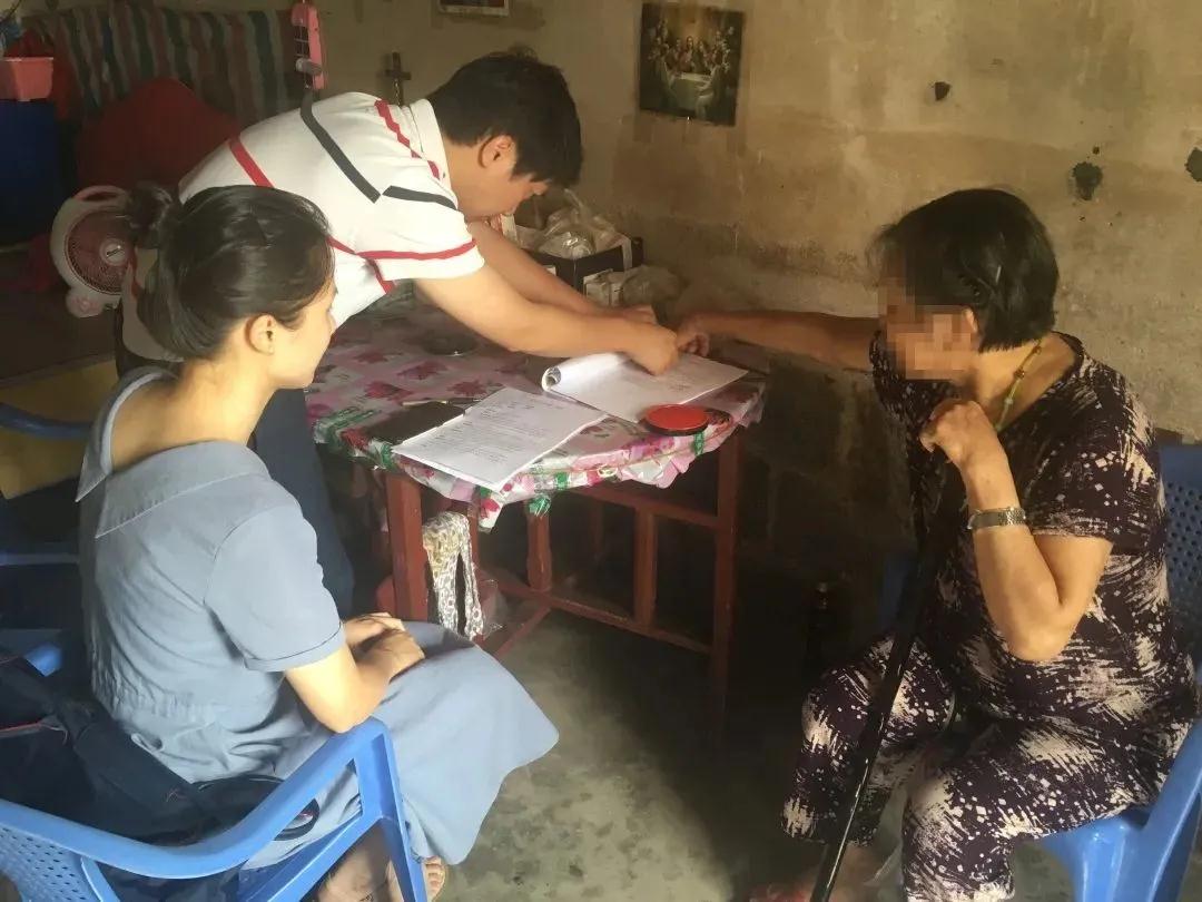 福州市法律援助中心工作人员和援助律师为行动不便的高龄受援人王大娘提供法律援助上门服务。