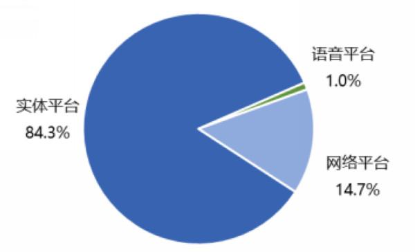 三大平台法律援助服务量中,实体平台占比84.3%。