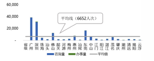 从各地市提供的法律咨询情况来看,广州、深圳、佛山、东莞这几个地市群众的法律咨询需求旺盛。