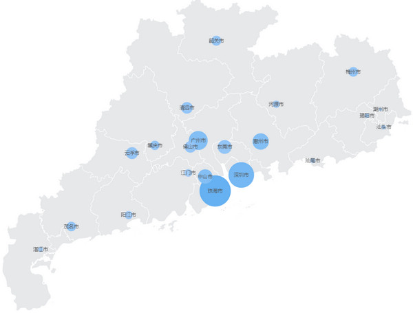 2020年6月,根据各地咨询服务总量和当地人口关系统计出的各市咨询服务热度图中,珠海咨询服务热度最高。