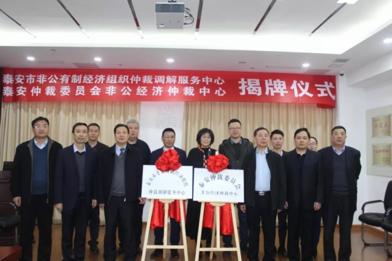 为贯彻落实习近平总书记关于优化营商环境和保护民营企业发展的系列重要指示精神,贯彻中央、省、市委关于营造法治化营商环境的部署要求,进一步优化发展环境,1月16号,泰安市非公有制经济组织仲裁调解服务中心暨泰安仲裁委员会非公经济仲裁中心正式揭牌成立,旨为非公经济企业良好发展提供优质、高效的法律服务,维护泰安市非公经济企业合法权益,服务非公经济健康发展。