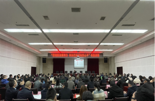 为扎实推进“贯彻新发展理念 江油怎么干”大学习大调研大讨论活动,2月25日下午,江油市在党政综合楼二楼第一会议室组织举办“贯彻新发展理念 法治江油建设怎么干”专题讲座,全市部门和乡镇(街道)分管领导,市法院、检察院、公安局和司法局职工代表共计173人参加专题讲座。专题讲座由江油市委常委,政法委书记李海同志主持。