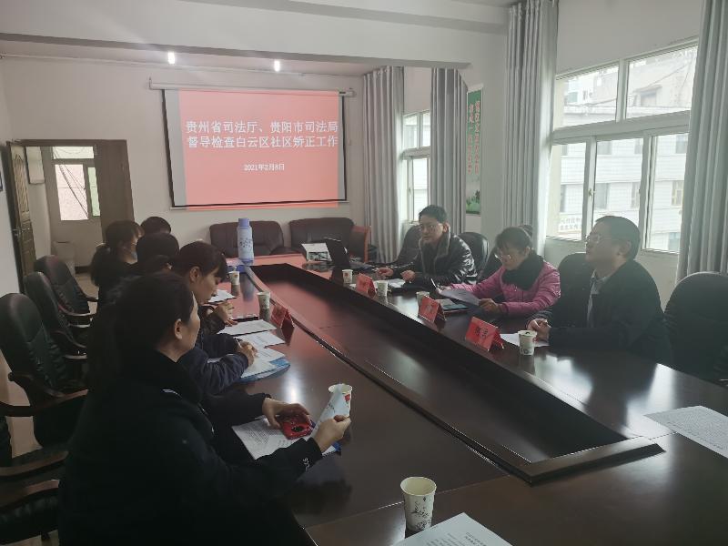 为贯彻落实司法部社区矫正工作视频督查会议精神,确保春节、全国“两会”期间全省社区矫正安全稳定,2月8日至9日,厅社区矫正管理局局长韩俊、副局长贾涛分别带队赴贵阳市、贵安新区和安顺市、黔南州开展春节、全国“两会”前社区矫正工作安全稳定专项督导检查。