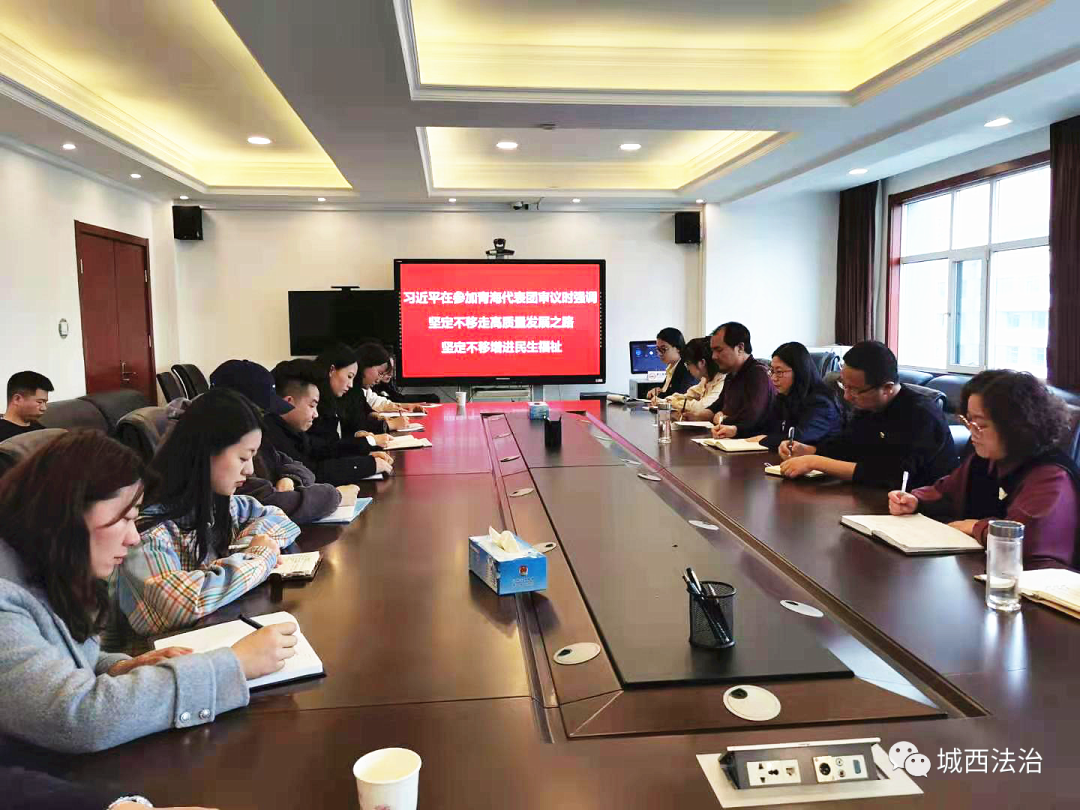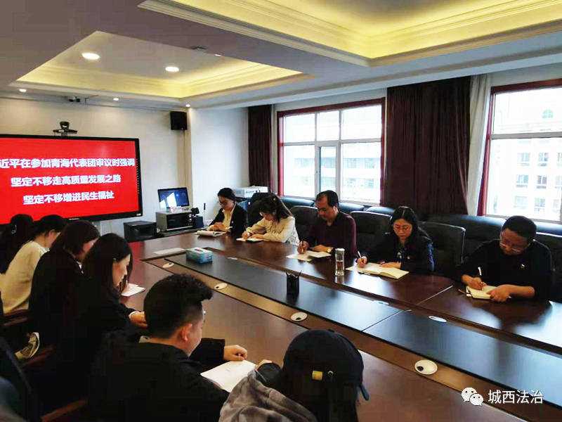 3月8日,城西区司法局组织全局党员干部学习了习近平总书记在参加青海代表团审议时的重要讲话精神会议,进一步统一思想,凝聚共识,切实把思想和行动统一到习近平总书记讲话精神上来。