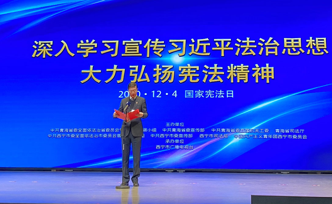 12月4日,第7个“国家宪法日”当天,在西宁广播电视台,青海省(西宁地区)2020年“宪法宣传周”活动启动仪式以网络直播方式举行,省委全面依法治省办副主任、省司法厅厅长刘天海出席,省委宣传部副部长高波致辞。