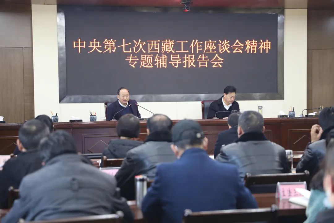 为扎实有效推进巡视整改工作,进一步增强司法厅系统各级党组织和广大党员干部学习宣传贯彻落实中央第七次西藏工作座谈会精神的政治自觉、思想自觉和行动自觉,确保巡视整改措施落地落实,2月2日上午,司法厅党委再次召开中央第七次西藏工作座谈会精神专题辅导报告会,重温中央第七次西藏工作座谈会精神特别是习近平总书记的重要讲话精神。