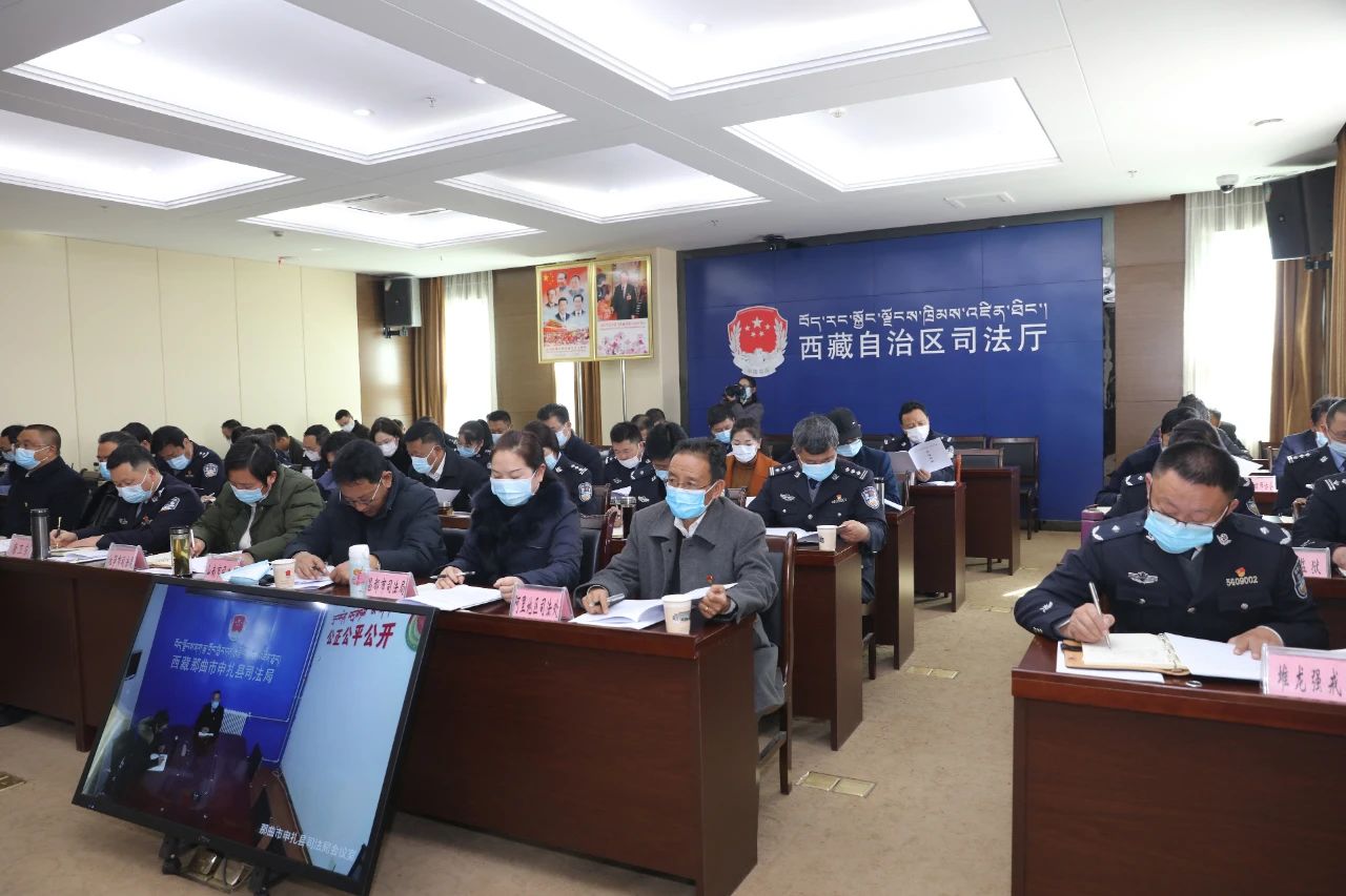 会议以视频形式召开。在家厅领导,各地(市)司法处(局)长,区党委依法治藏办秘书处、驻厅纪检监察组,厅机关各处室、各直属单位以及自治区律师协会、公证协会主要负责同志参加主会场会议。各地(市)、县(区)司法处(局),各直属单位和昌都强戒所设分会场。