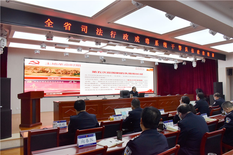 为了有力推动全省司法行政戒毒系统党史学习教育和队伍教育整顿深入开展,全面提高干警职工队伍政治素质和政治能力,3月10日上午,省戒毒管理局启动了为期三天的全省司法行政戒毒系统“加强党史教育 开展队伍整顿”政治轮训。本次轮训以视频会议形式举办,局机关、各省属戒毒所除值班执勤人员外800余人参加轮训。