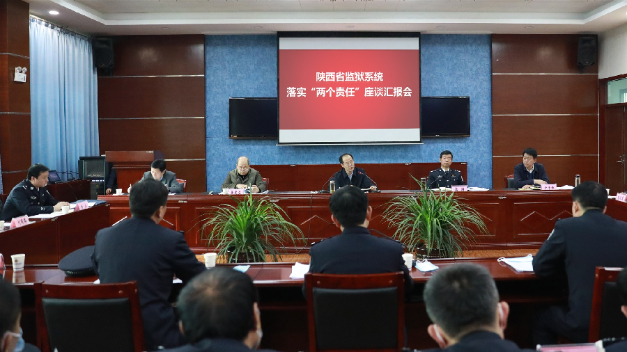 会议由省司法厅党组成员、省监狱管理局党委书记、局长高涛主持。会上,省监狱管理局纪委书记王彦锋汇报了全省监狱纪检监察机构压实全面从严治党及履行监督责任工作情况,省渭南监狱、富平监狱、华山监狱、庄里监狱党委主要负责同志分别汇报了落实“两个责任”工作情况。省纪委监委驻省司法厅纪检监察组负责同志、部分监狱的纪委书记和厅局有关负责同志参加了座谈会。