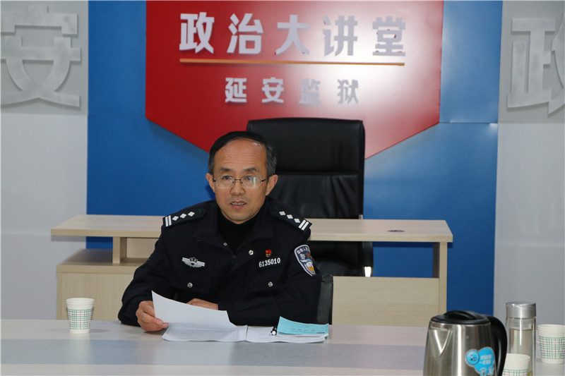 3月8日,陕西省延安监狱组织第九批封闭执勤党员警察开展专题党史学习教育,该批带班领导,监狱党委委员、副监狱长邵建华为党员警察讲党课。