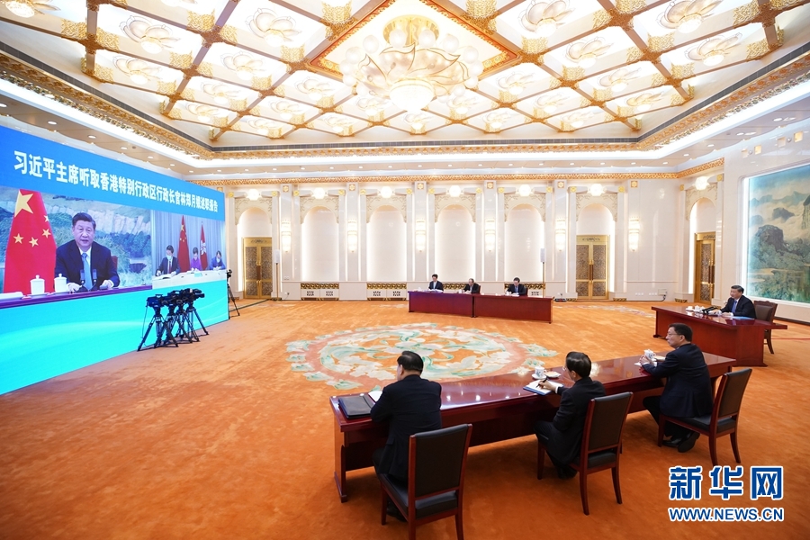 1月27日,国家主席习近平在北京以视频连线方式听取了香港特别行政区行政长官林郑月娥2020年度的述职报告。新华社记者 鞠鹏 摄
