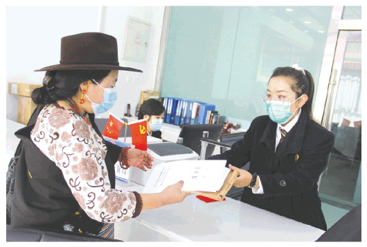 群众在那曲市公共法律服务中心办理公证业务。
