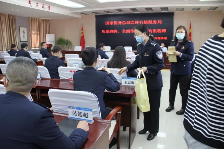 为认真贯彻落实习近平总书记关于《中华人民共和国民法典》学习宣传工作的重要指示,进一步加强公职人员法治理念教育,不断提升依法行政能力和服务群众的本领,近日,赤峰市巴林右旗司法局选派宣讲小组深入旗税务局开展民法典宣讲活动。