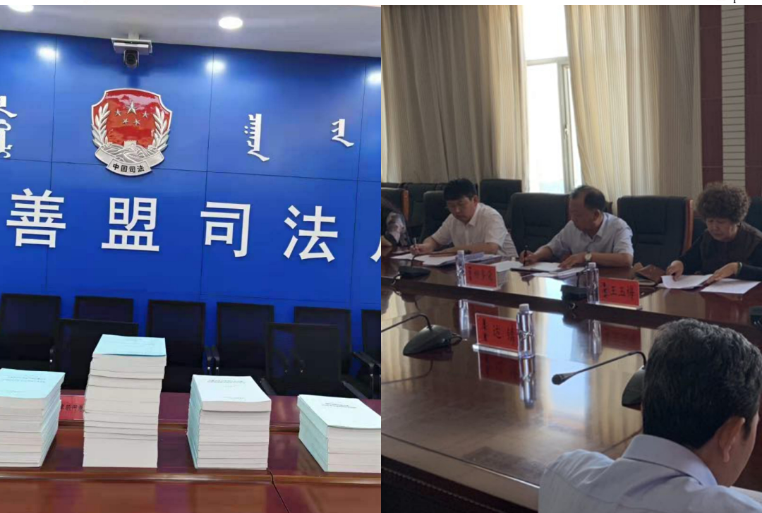 制定推进盟域社会治理现代化试点工作方案和工作指引,有效推进社会治理各项工作,2020年,被列为全国市域社会治理现代化第一批试点城市。阿拉善盟政务服务标准化国家级试点项目和阿拉善高新区相对集中行政许可权改革自治区级试点顺利通过验收。2017年,阿左旗政府荣获全区首届“十个法治旗县(市、区)政府”和第四届“中国法治政府”提名奖;阿右旗荣获全国“七五”普法中期先进旗县,被自治区党委依法治区办命名为全区第二批法治政府建设示范旗县。全盟现有“全国民主法治示范村(社区)”3个,“自治区级民主法治示范社区”1个。