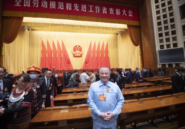 图为2020年11月24日,夏风在北京人民大会堂接受全国劳模表彰。