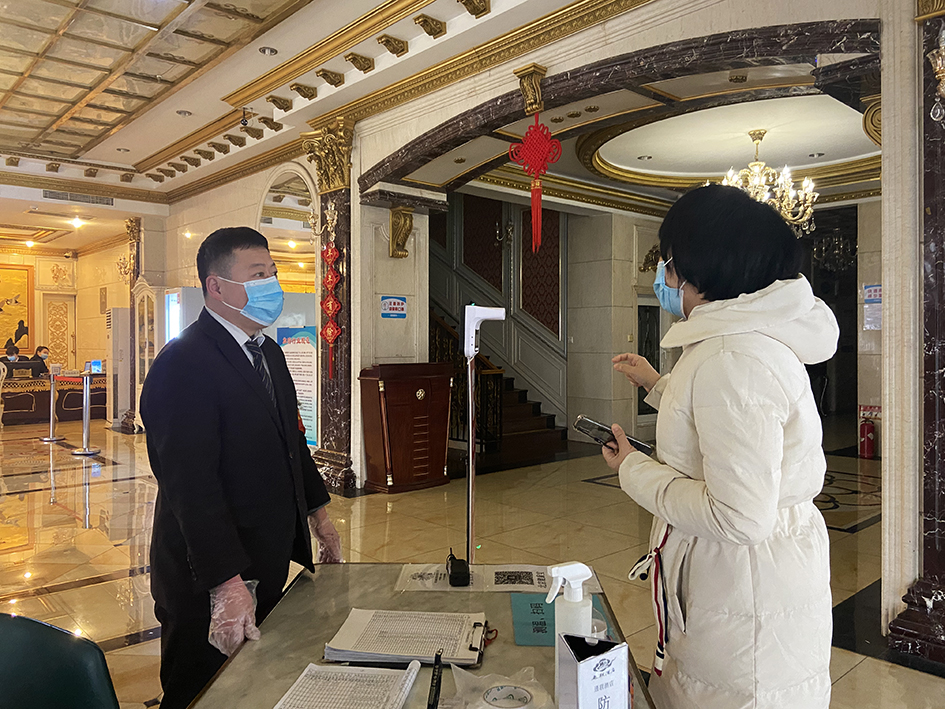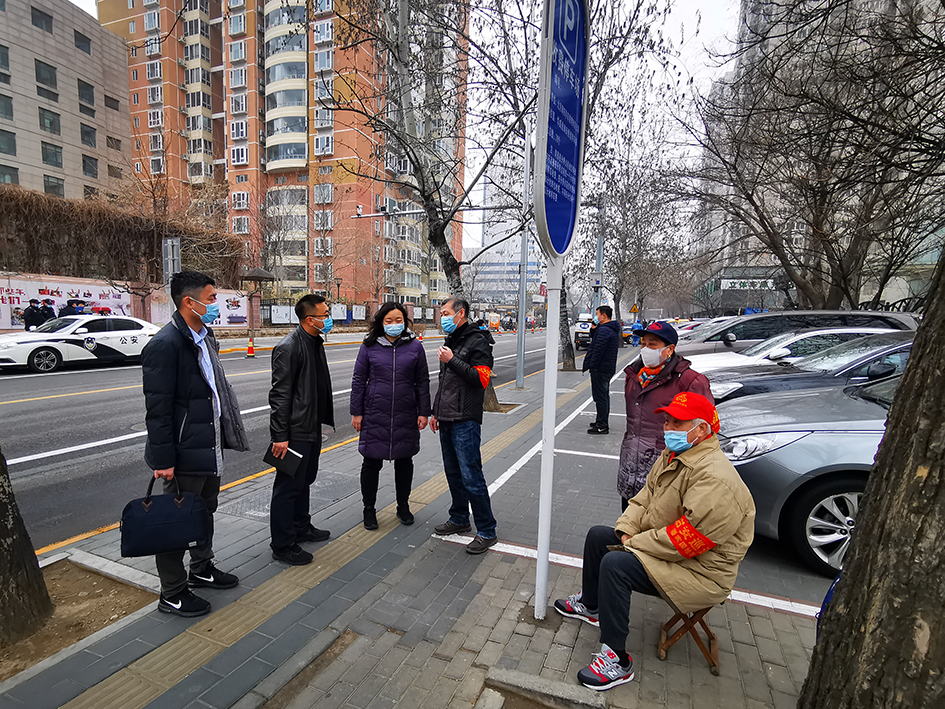 海淀区羊坊店街道纪工委实地监督检查两会代表委员驻地周边防疫工作落实情况。刘璐 摄