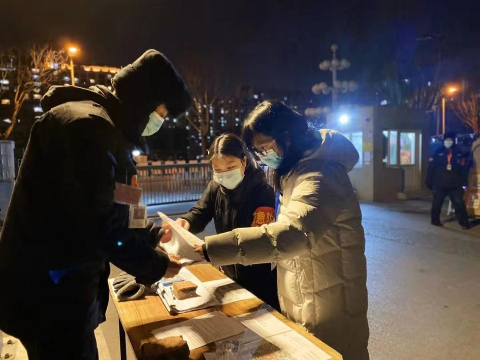 丰台区花乡草桥欣园社区纪检监察工作人员对重点防疫卡口进行夜间监督检查。丰台区纪委监委 供图