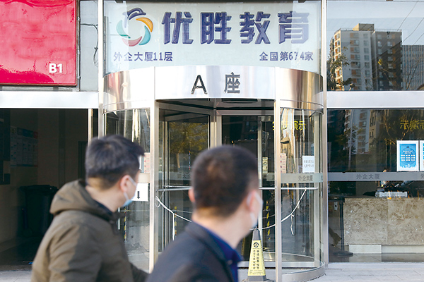 2020年10月18日,有家长到在线教育机构优胜教育北京总部办理学费退费时,发现其总部已经人去楼空。11月15日,优胜教育承认公司资金链断裂,但多地已开展补偿,初步统计补偿2万余人9000余万元。图为北京一处优胜教育的培训中心大门紧闭,内部已经搬空。(图片来源:人民视觉)