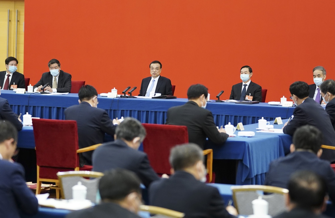 3月6日,中共中央政治局常委、国务院总理李克强看望出席全国政协十三届四次会议的经济界委员并参加讨论。新华社记者 燕雁 摄