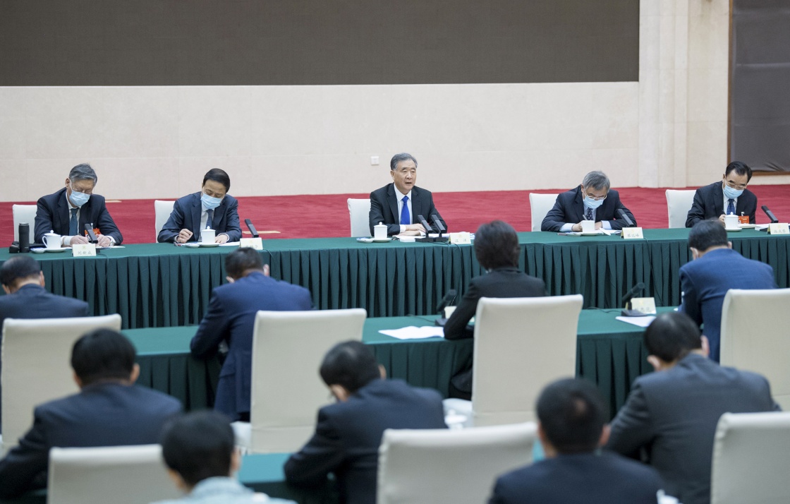 3月6日,中共中央政治局常委、全国政协主席汪洋看望出席全国政协十三届四次会议的民进、九三学社界委员并参加讨论。新华社记者 高洁 摄