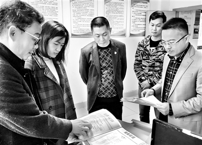 福建省晋江市梅岭街道纪工委检查梅庭社区“两委”误工补贴发放情况。 陈婷婷 摄