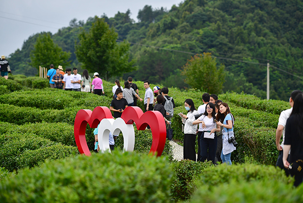 专项治理开展以来,陕西省着眼提高党员干部对脱贫攻坚政治任务的理解把握,分级分类做好政策、能力、作风精准培训,强化知责守责负责尽责意识。平利县蒋家坪村充分发挥茶主导产业带动脱贫效应,探索建立“支部+园区+贫困户”机制,通过多种方式带动群众增收。图为蒋家坪村茶业现代示范园区吸引大量游客前来参观。新华社记者 邵瑞 摄