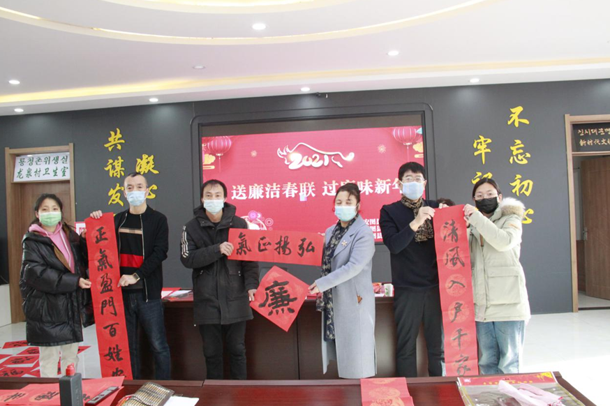 为进一步加强廉洁文化建设、助力乡村振兴,近日,安图县纪委监委联合县委统战部、瓮声街道在明月镇龙泉村开展“送廉洁春联、过廉味新年”活动。