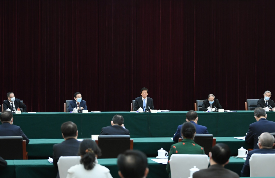 3月6日,中共中央政治局常委、全国人大常委会委员长栗战书看望出席全国政协十三届四次会议的致公党、侨联、对外友好界委员并参加讨论。新华社记者 申宏 摄