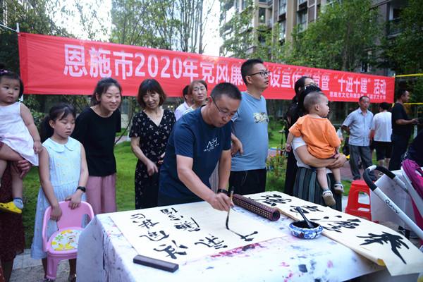 “清风扶正气,廉字值千金……”由恩施市纪委监委等单位承办的廉政书法展走进州城各大小区,书法爱好者现场挥毫泼墨,为居民们书“廉”送“廉”。