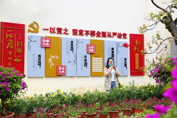 该县黄金洞乡党委政府将廉政元素充分融入乡镇景观建设,打造集反腐倡廉、普纪普法、家风家训文化为一体的“廉政花园”,吸引党员群众纷纷驻足观赏。
