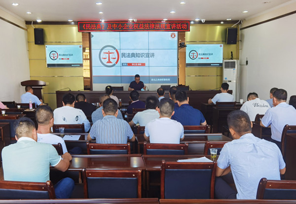 该县司法局联合县自然资源和规划局,组织开展《民法典》及法律法规宣讲进企业活动,专业律师结合实际案例,围绕企业设立、用工、用地、融资等营商环境建设重点领域、关键环节,开展精准法律宣教活动,机关党员干部和矿产企业负责人共学《民法典》。